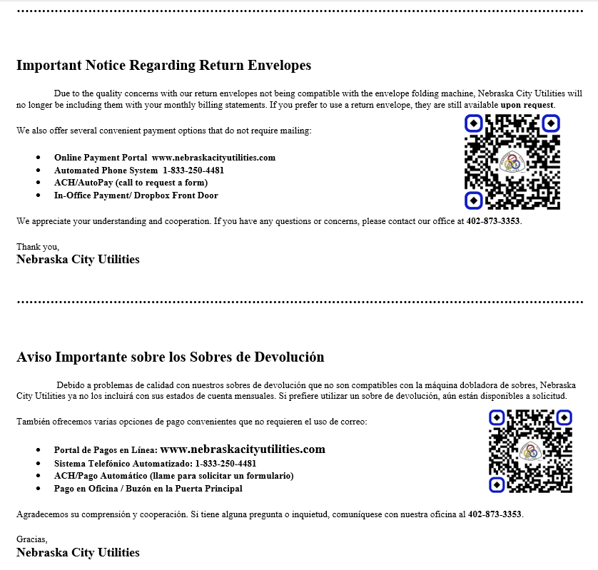 There has recently been some confusion about how to properly use our online services to conduct business with Nebraska City Utilities. Our billing (Accounting) system and the online bill pay systems are separate systems.
